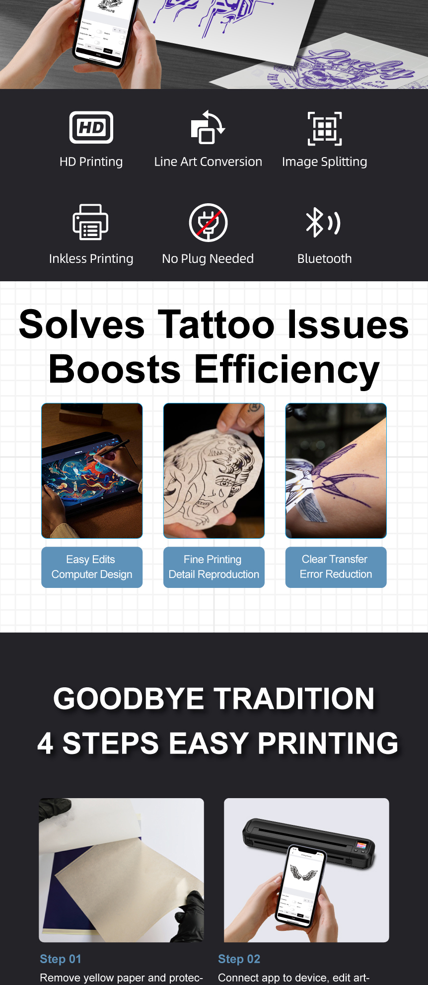 A4 Stencil Printing: Perfect for creating detailed, high-quality tattoo stencils.